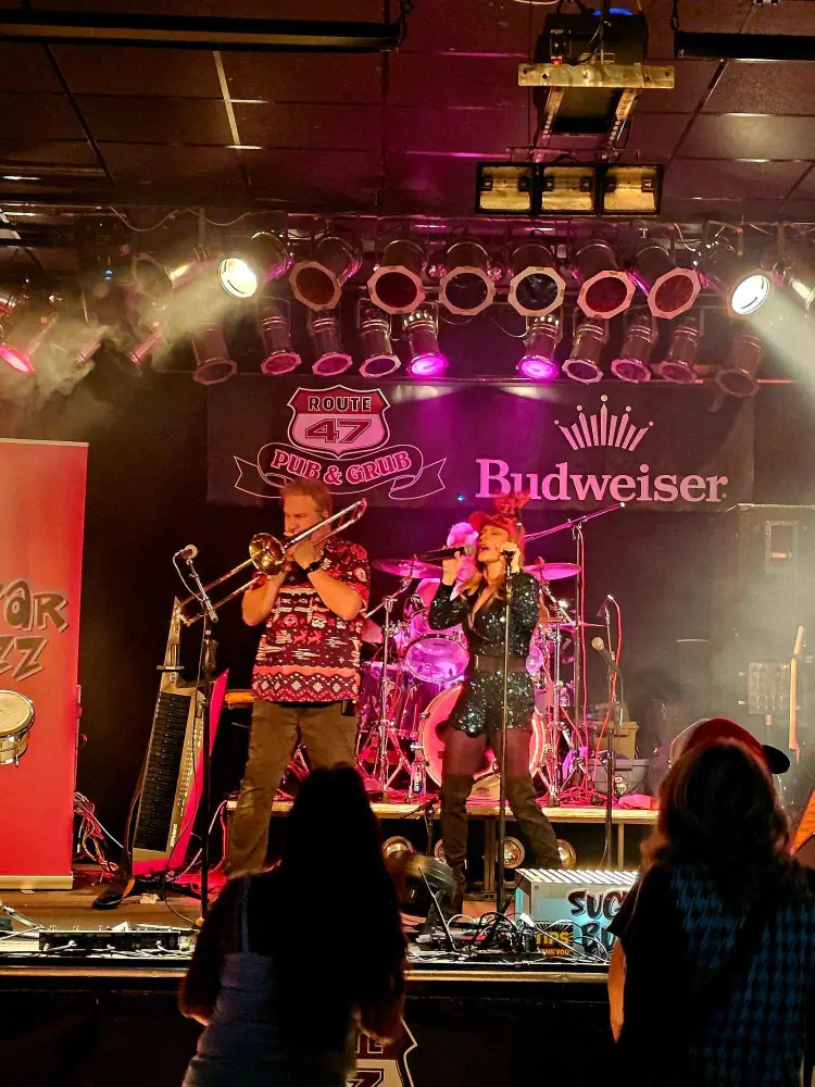 It’s another season of holidays for this Minnesota cover band, and we’re on the leading edge of Christmas with Route 47 in Fridley. We’re always thrilled when this one is on the schedule! Beth has brought fun head gear: antlers and Santa hats, and the band is dressed in red and green for the holiday.