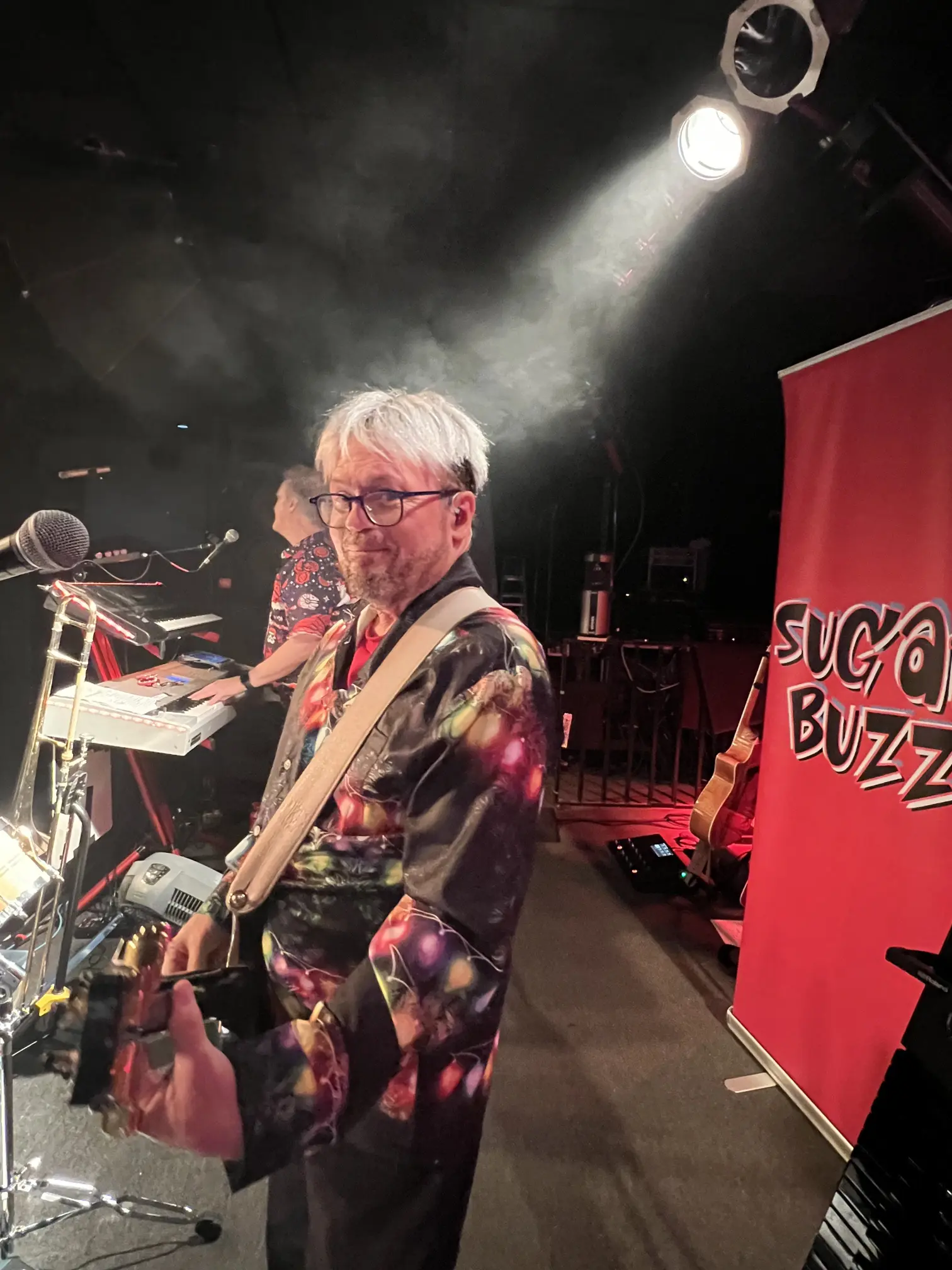 Fan and friend Eric sent the band 6 water moccasin shots to help us get people in the party mood (thank you Eric!) while Robin and her “last day of work at this company” party crew led the dancefloor antics. It was a night of something old and something new: new fans to follow us – old friends giving cheers for the year. We were reminded yet again of WHY we do this. The fun, the music, the people. Now we rest through the holidays until a very special New Year’s Eve show is upon us. Cheers and Merry Christmas, Sugar Buzz fans!