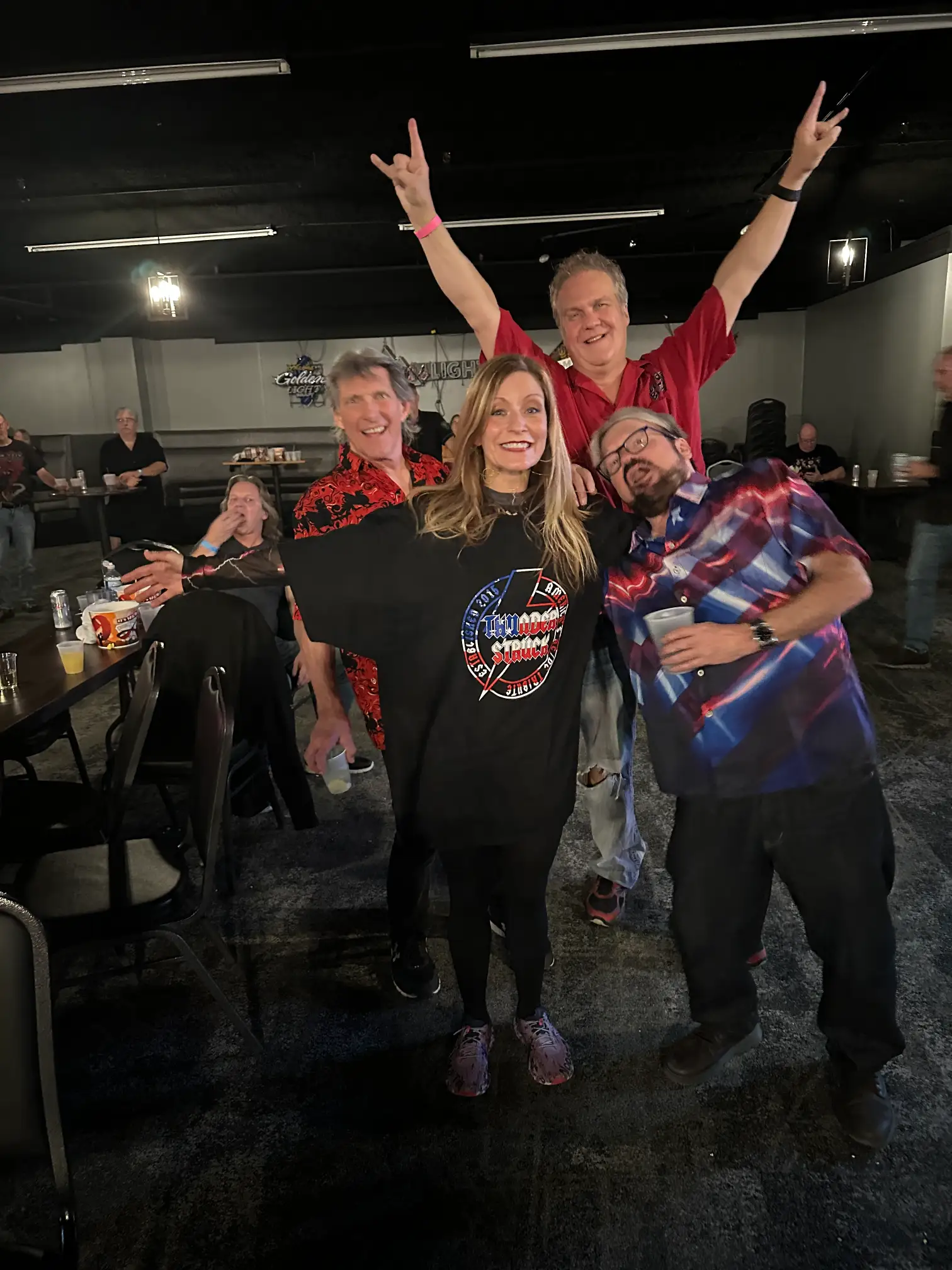 The first note dropped and within about 3 minutes, fans or maybe just the curious onlooker decided to walk onto the dance floor to get a closer look.  Most were originally seated at tables, but those coming up to the front made us feel we belonged. Joe, our sound and light tech was expert in delivering the mix we needed.  He operated the lighting effects in such a way that we KNEW he KNEW the material. 75 minutes flew by, and we stayed to watch the headliner wow the crowd with energy we were optimistic we matched. Thunderstruck gave Sugar Buzz a shout out at least 3 times during their set, and we were buoyed by the kudos.
