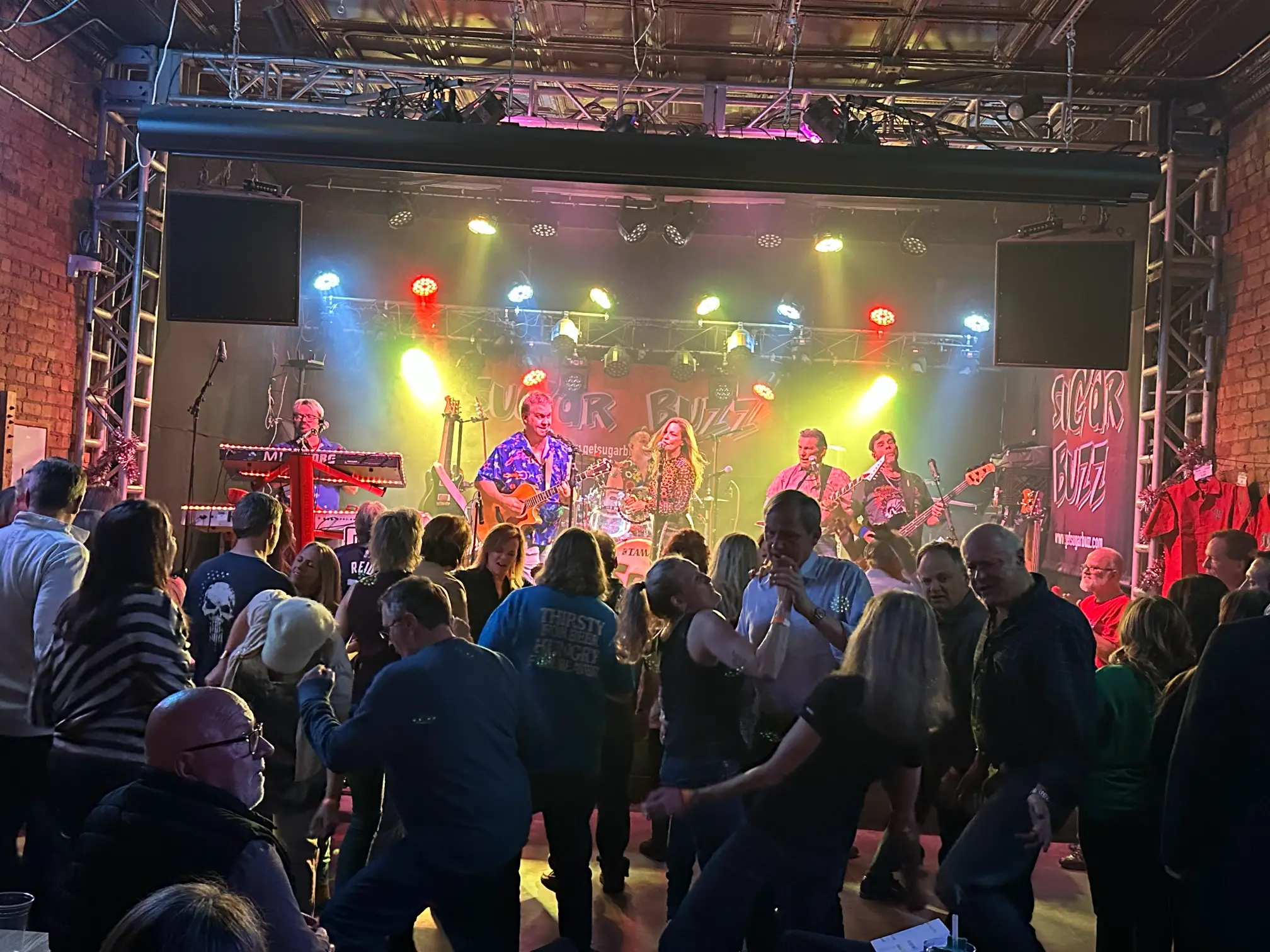 People interacted with performers as Henry, Dale and Mark prowled the crowd with mics and instruments. Sugar Buzz prides itself as an inclusive and immersive experience. You feel you’re part of the action – part of the show. The energy is high, and we feel we are able to convey how much fun we have as a band when we perform. The comments are always about the musicianship, sure, but we so often hear about the ENERGY and the FUN we bring. We felt the crowd with us that night. As a cover band, you have to bring your “special sauce” and we believe that immersive/ inclusive experience is ours. Cheers to the patrons of Mainstreet for bringing the energy back to us!
